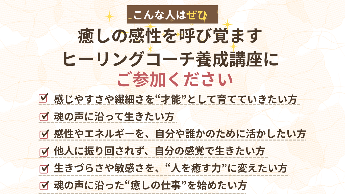 この講座では、繊細さや感受性を「癒しの才能」として丁寧に育てていきます。